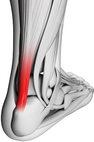 Most of our patients typically feel a mild ache or pain in the back of the lower leg or above the heel after exercising. They can also experience tenderness or stiffness in the same area, normally in the morning, which usually improves with moderate movement.
